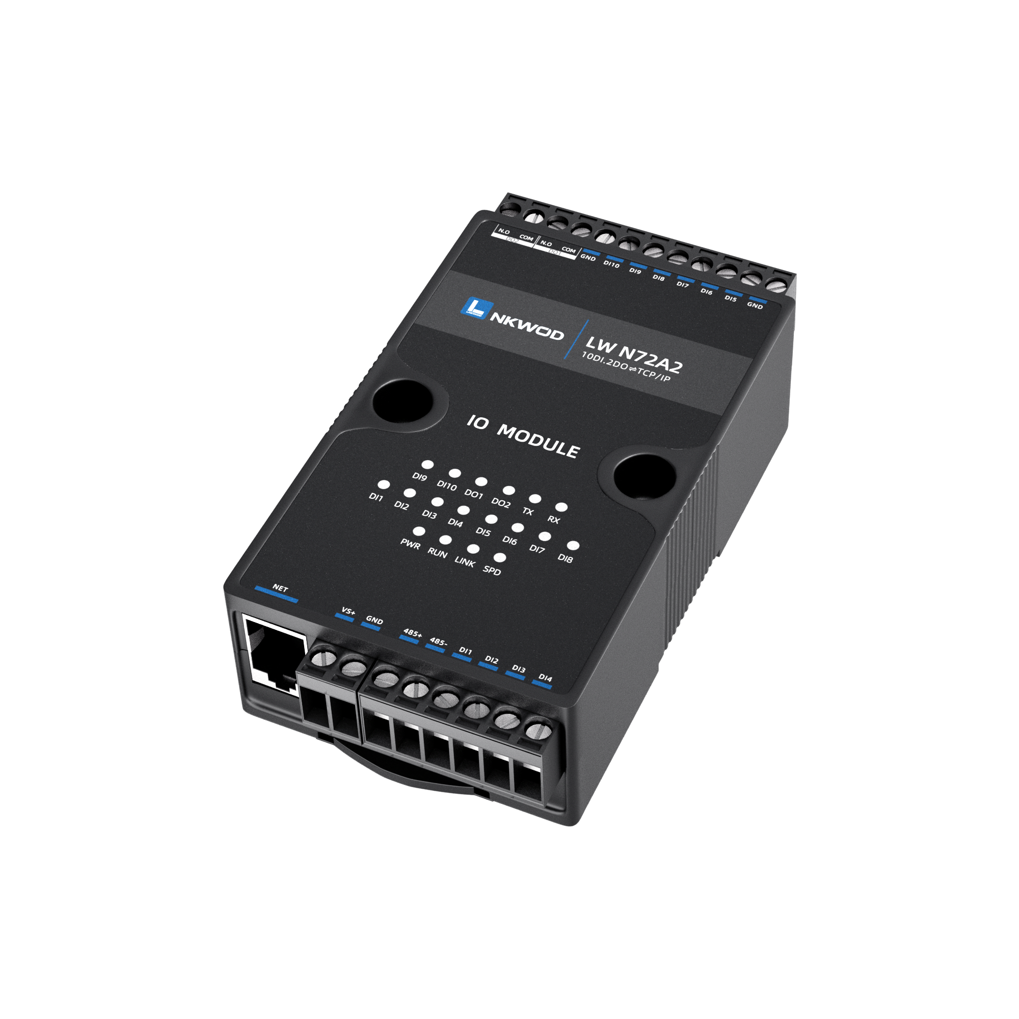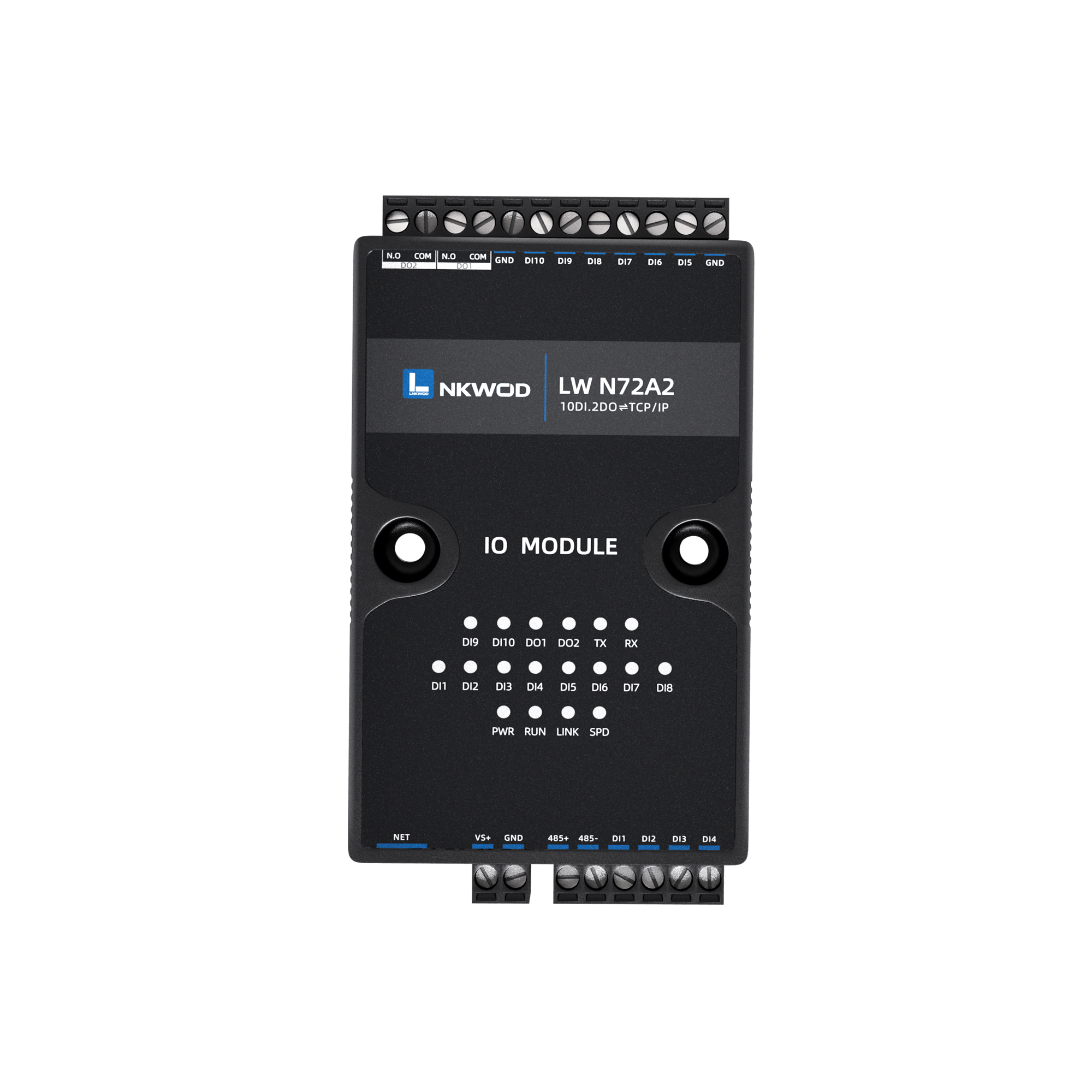 LW N72A2为网络型智能数字量采集器,具有10路干接点数字量输入(DI)和2路A型继电器输出数字量(DO);电源及RJ-45接口均加入防雷保护电路,产品稳定可靠
