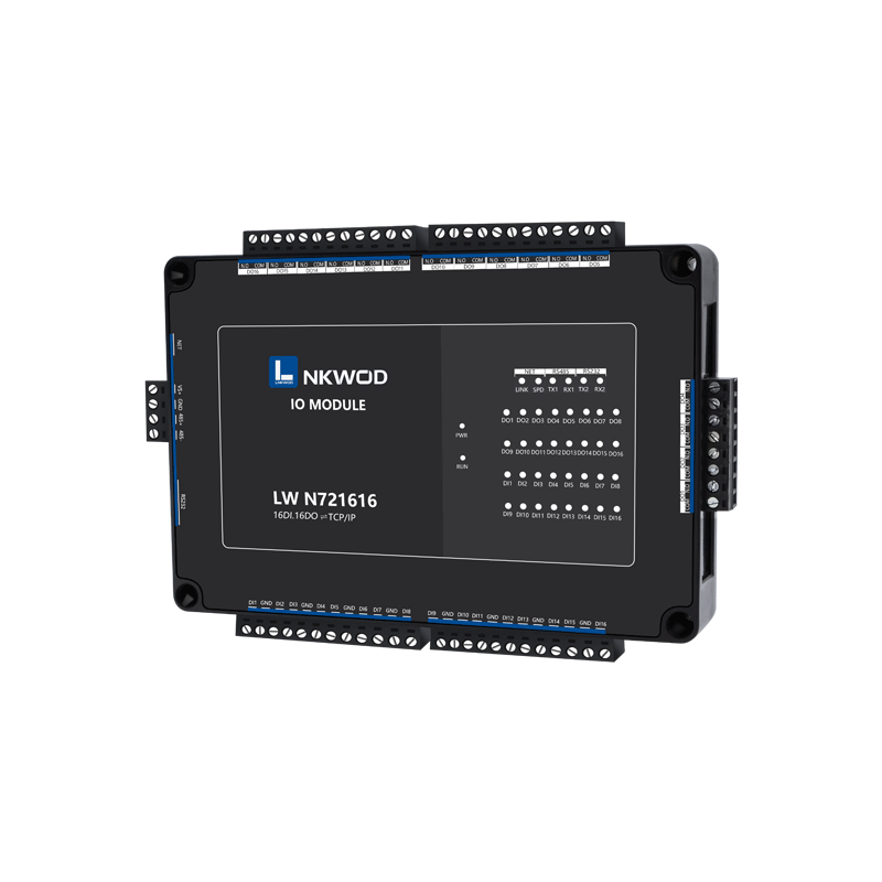 LW N721616为网络型智能数字量采集器,具有16路干接点数字量输入(DI)和16路A型继电器输出数字量(DO)。 设备同时带有一个RS232接口和一个RS485接口,向下级联RS232接口或者RS485接口的设备,可以将RS232接口或者RS485接口数据转到网络,实现串口和以太网的双向透明传输、Modbus协议传输或虚拟串口传输功能。