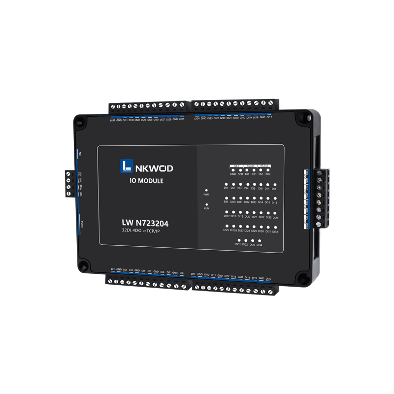 LW N723204为网络型智能数字量采集器,具有32路干接点数字量输入(DI)和4路A型继电器输出数字量(DO); 设备同时带有一个RS232接口和一个RS485接口,向下级联RS232接口或者RS485接口的设备,可以将RS232接口或者RS485接口数据转到网络,实现串口和以太网的双向透明传输、Modbus协议传输或虚拟串口传输功能。