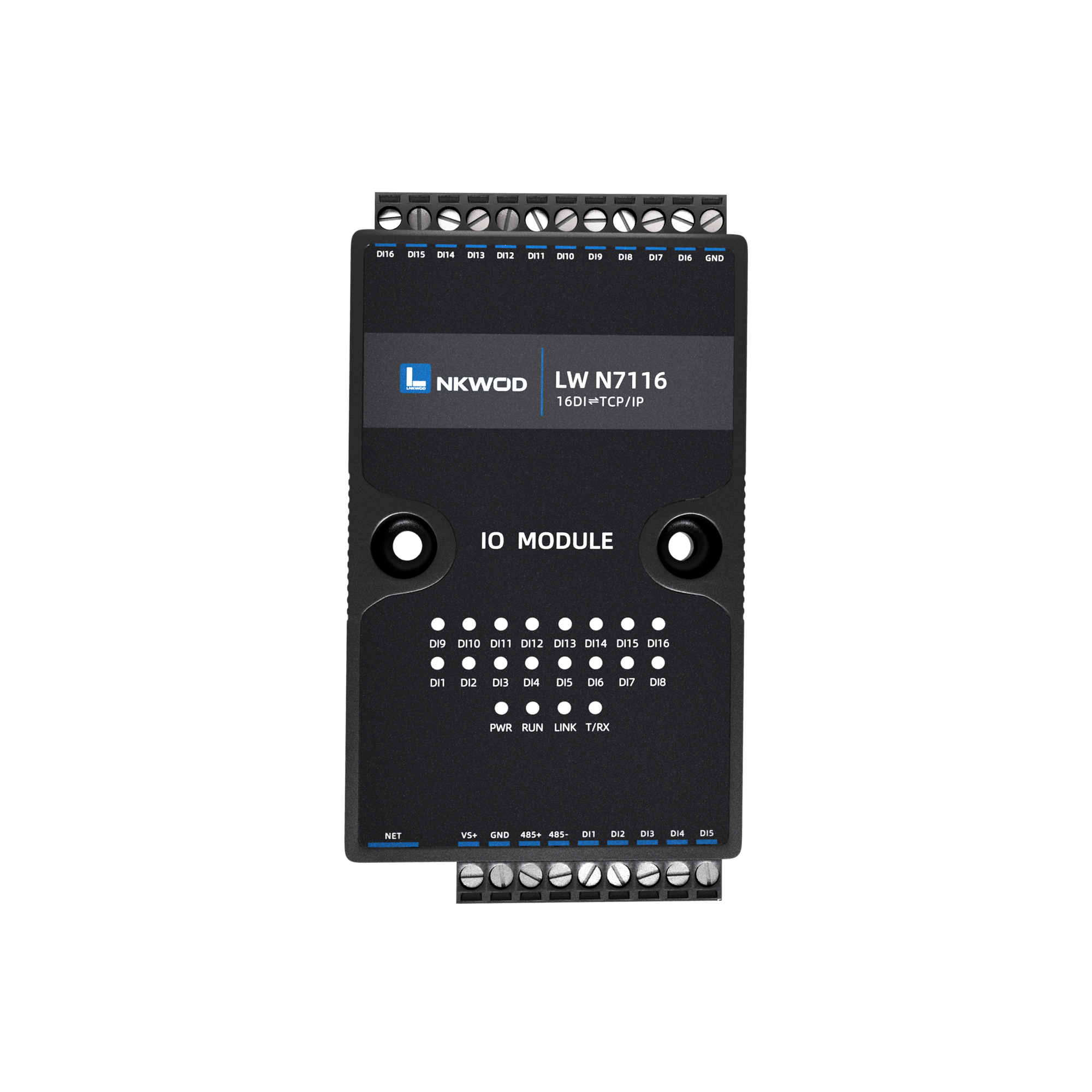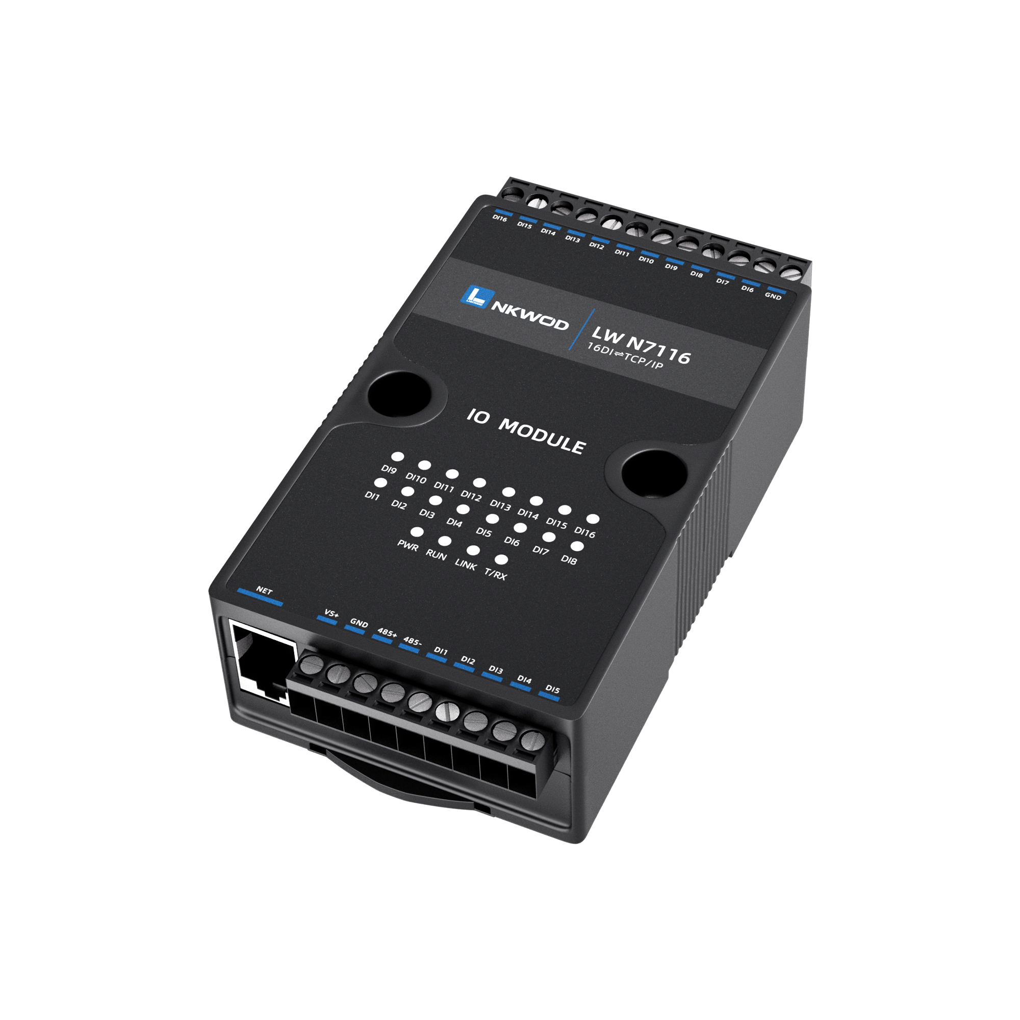 LW N7116 为网络型智能数字量采集器,具有 16 路干接点数字量输入(DI);电源及 RJ-45 接口均加入防雷保护 电路,产品稳定可靠