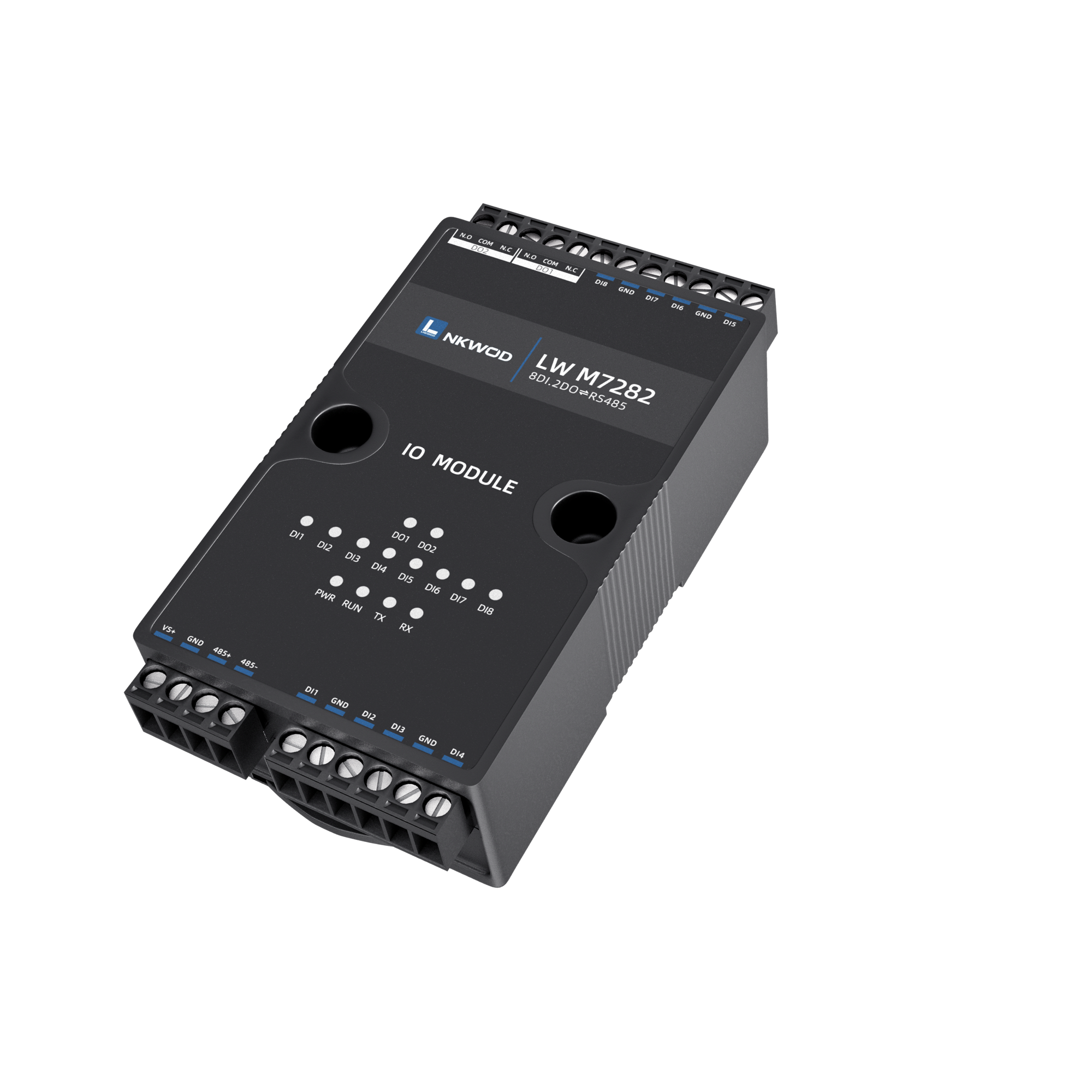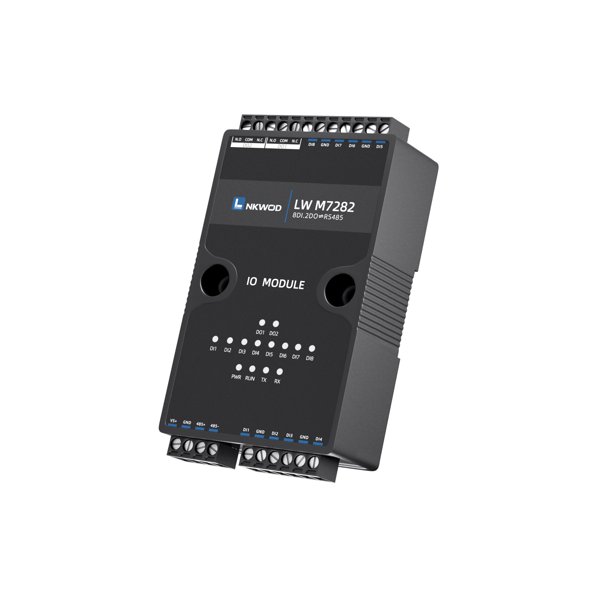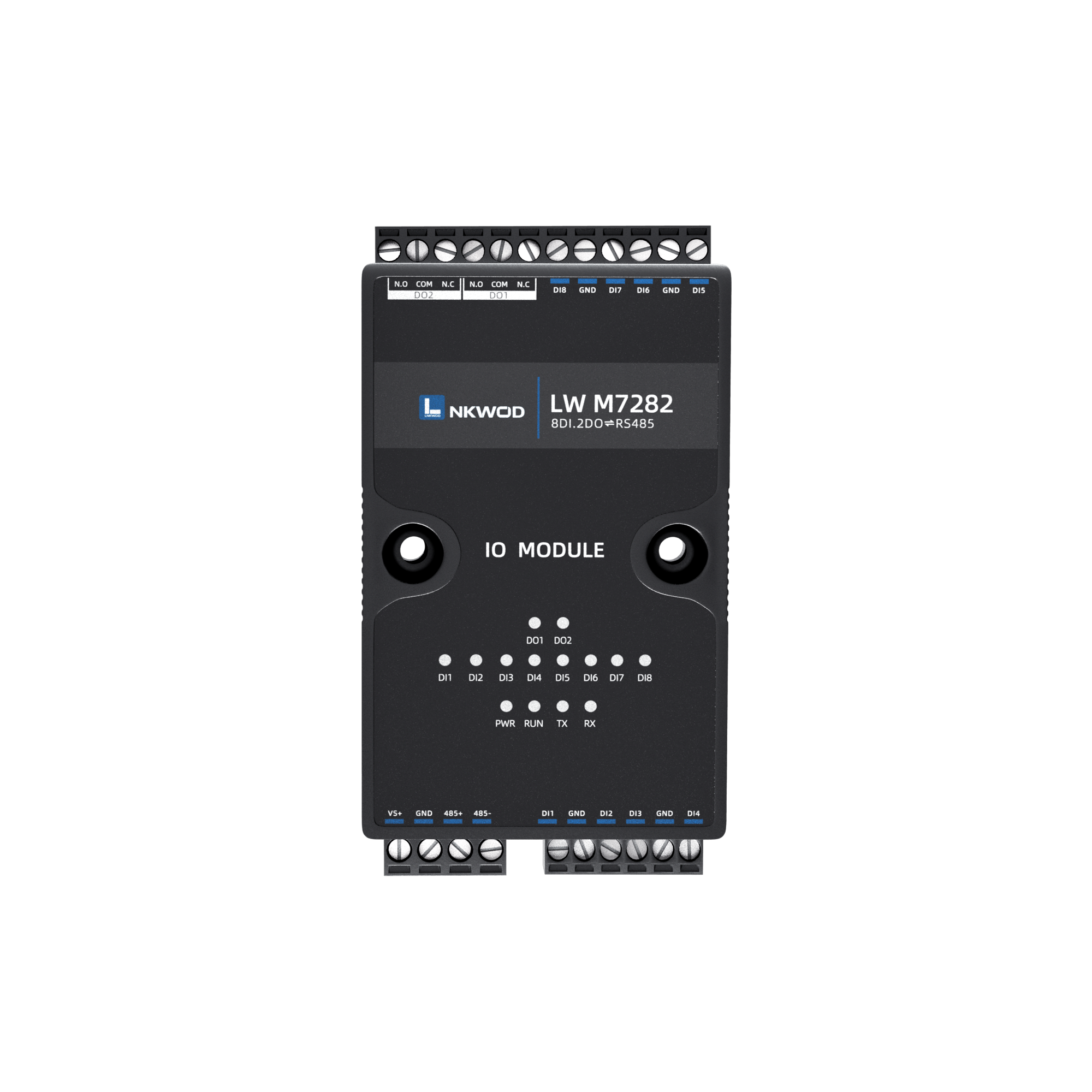 LW M7282为RS485型智能数字量采集器,具有8路干接点数字量输入(DI)和2路C型继电器输出数字量(DO)