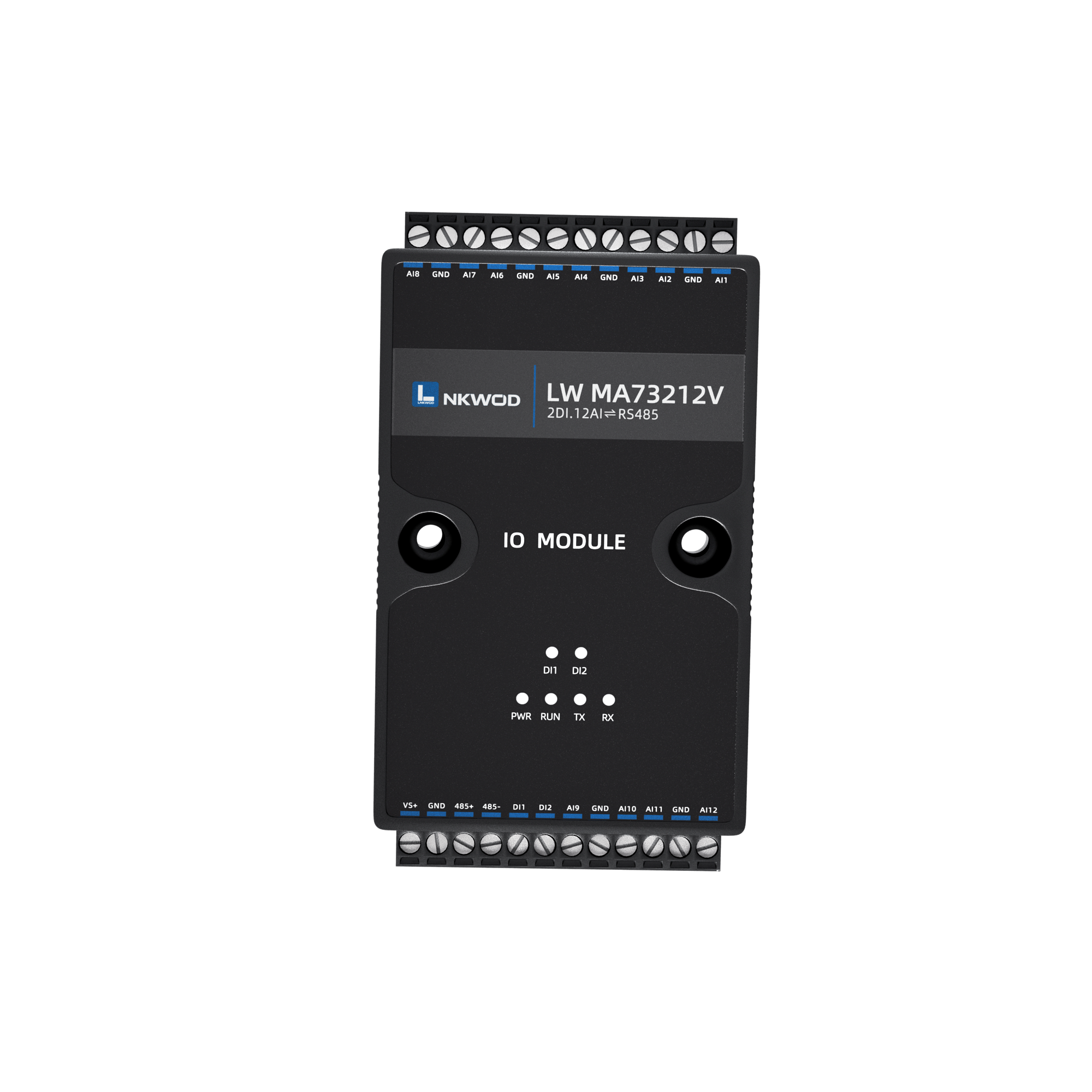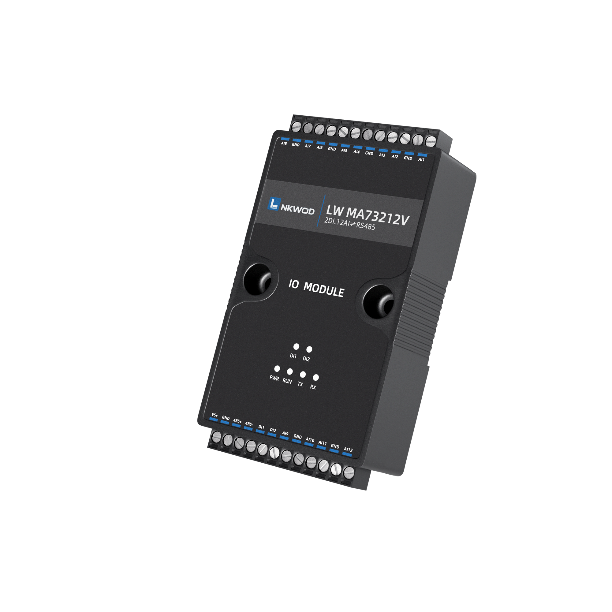 LW MA73212V 为混合型隔离混合智能采集器,具有 2 路干接点数字量输入(DI),12 路电压型模拟量输入, 支 持电压(量程为 0~5V/0~10V)两种可配置量程,采用单端输入设计。