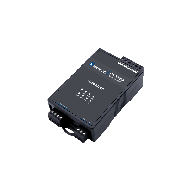 LW S7222为RS485型智能数字量采集器,具有2路干接点数字量输入(DI)和2路C型继电器输出数字量(DO)。