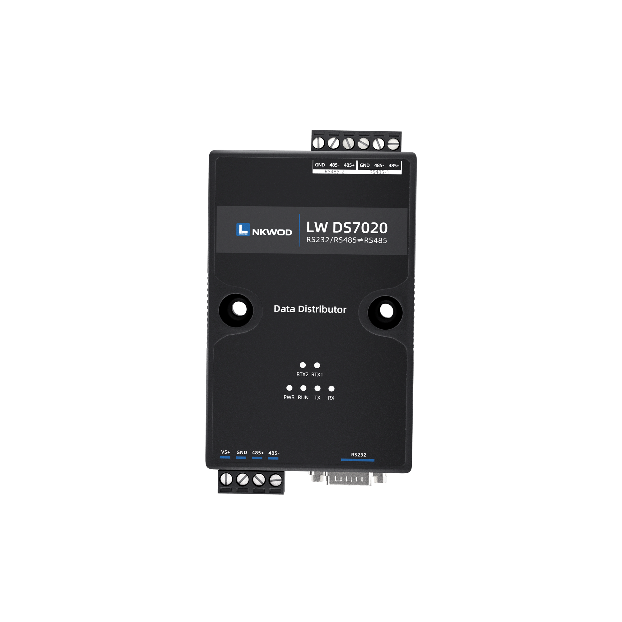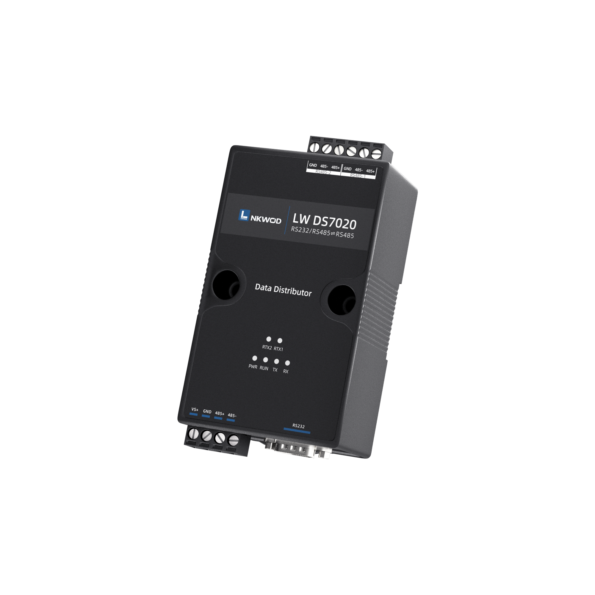 LW DS7020 是一款稳定可靠的⾼性能⼯业级 RS485 数据分线器,共三个 RS485 接⼝,可以同时 将两个 RS485 接⼝的数据,转发到另外⼀个 RS485 接⼝上。