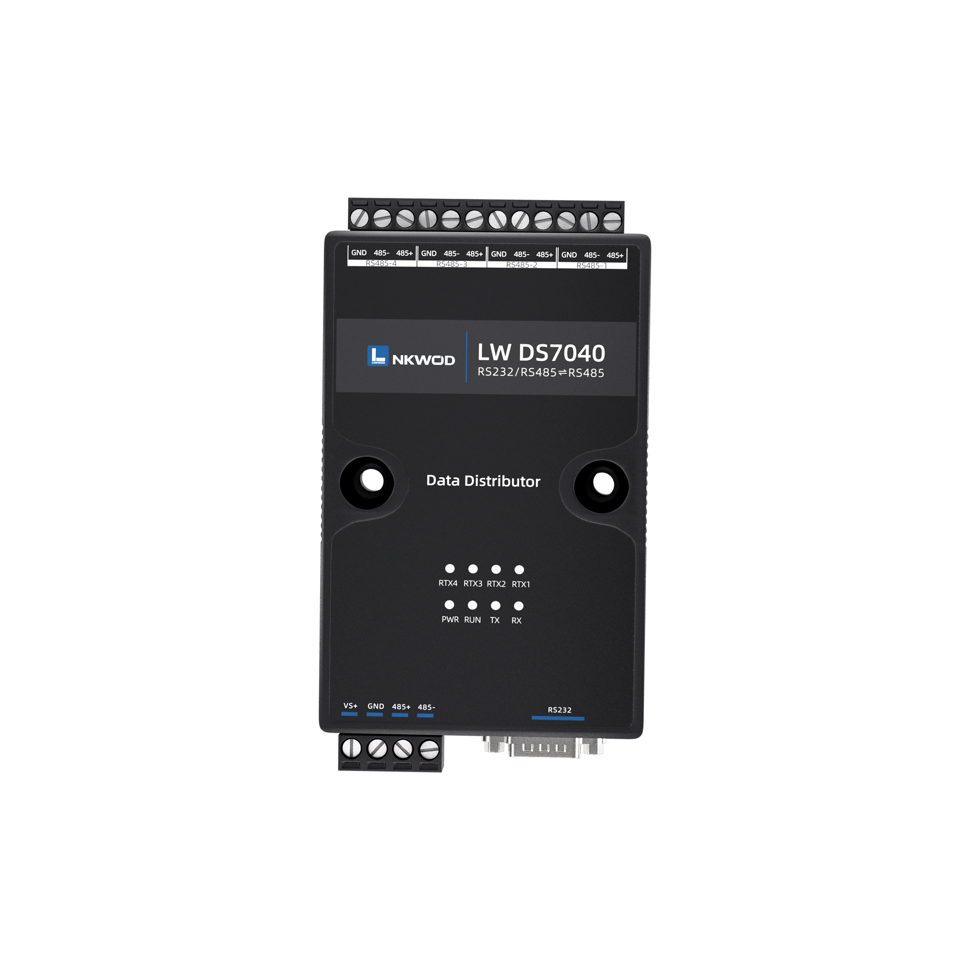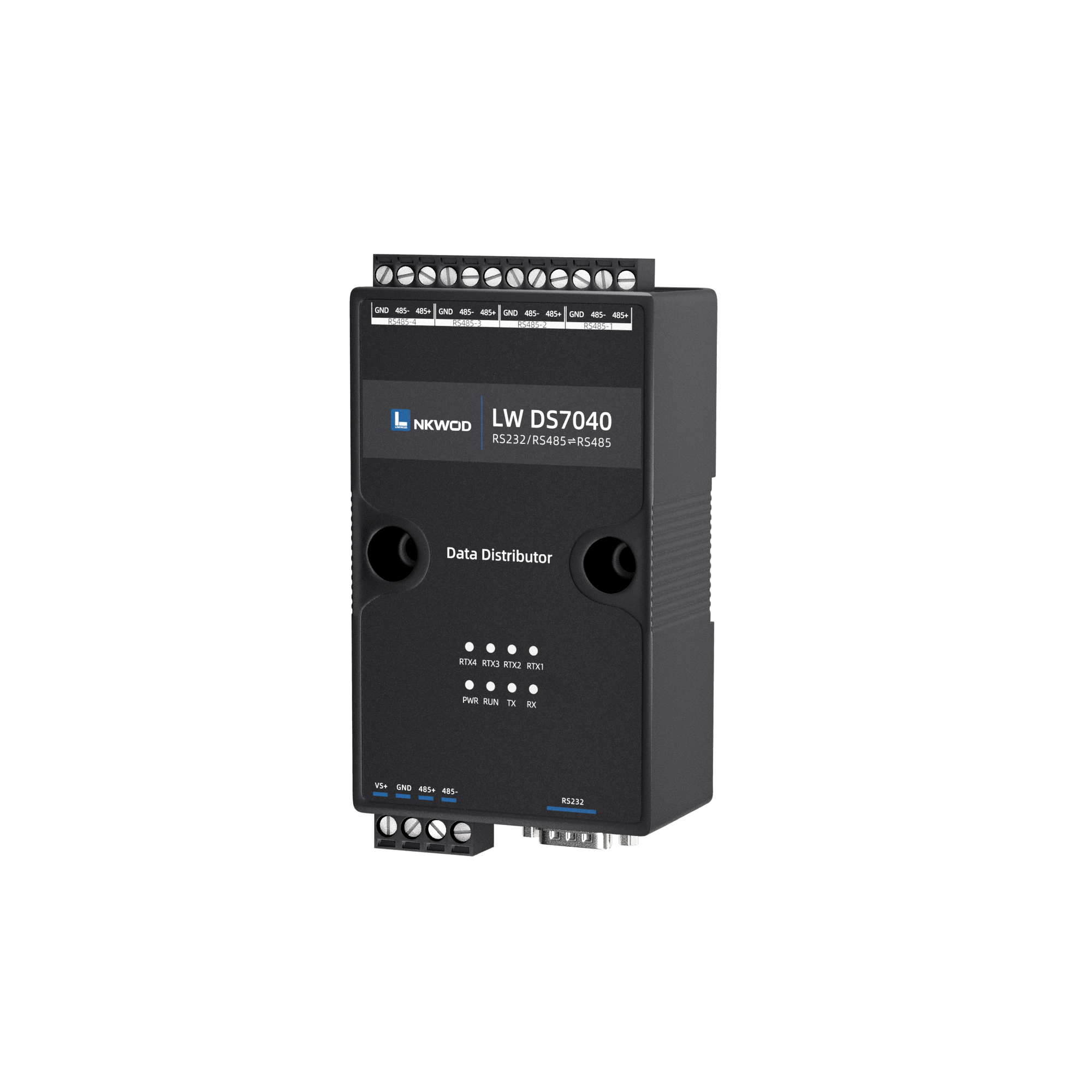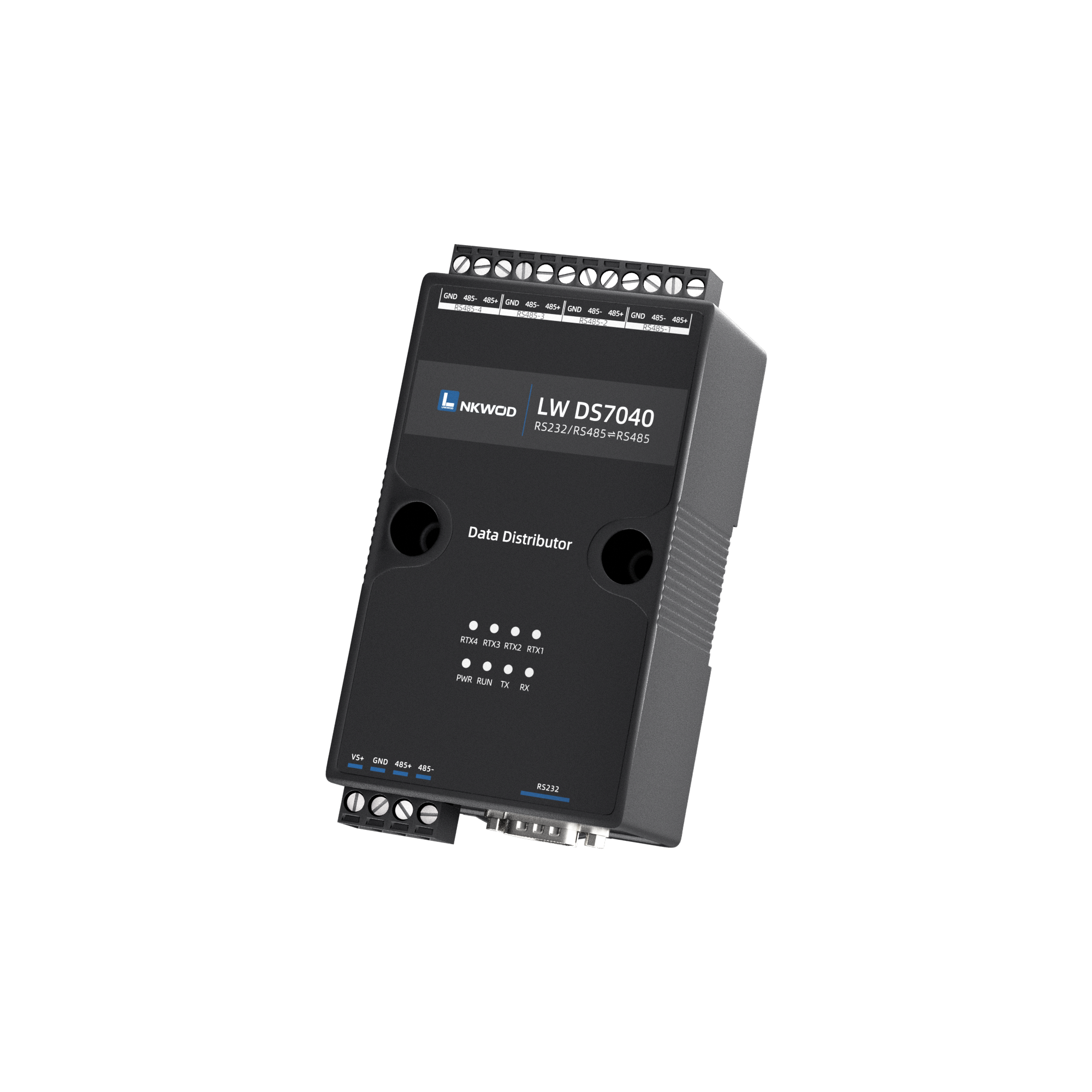 LW DS7040 是一款稳定可靠的⾼性能⼯业级 RS485 数据分线器,共五个 RS485 接⼝,可以同时 将四个 RS485 接⼝的数据,转发到另外⼀个 RS485 接⼝上。