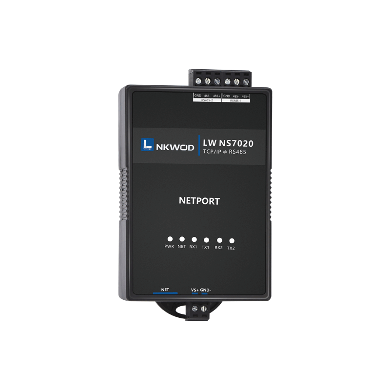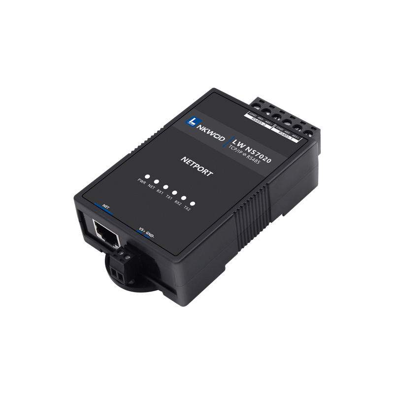 LW NS7020是一款能让串口设备立即具备联网能力的串口联网服务器,可以把分散的串行设备、主机等通过网络来集中管理。该产品支持2路RS485转1路10M以太网接口,它提供RS485到 TCP/IP网络和TCP/IP网络到RS485的数据透明传输、虚拟串口传输或者Modbus协议传输等三种传输方式。